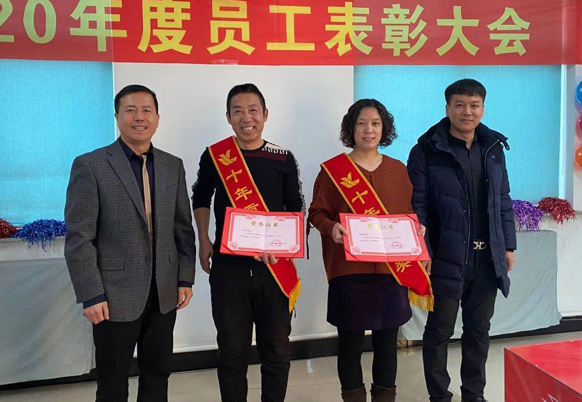 閆希東、薛曉娟獲得2020年度十年貢獻(xiàn)獎,十年的堅守不渝,十年的默默耕作,他們把最美好的青春韶華賦予了我們?yōu)橹餐瑠^斗的事業(yè),十年如一日他們時刻心系企業(yè)的憂患,與企業(yè)同風(fēng)雨共命運,正是因為他們的付出凱為的今天才如此絢麗。公司總經(jīng)理王鐵良與銷售部經(jīng)理趙福寬為獲獎?wù)哳C發(fā)榮譽證書。